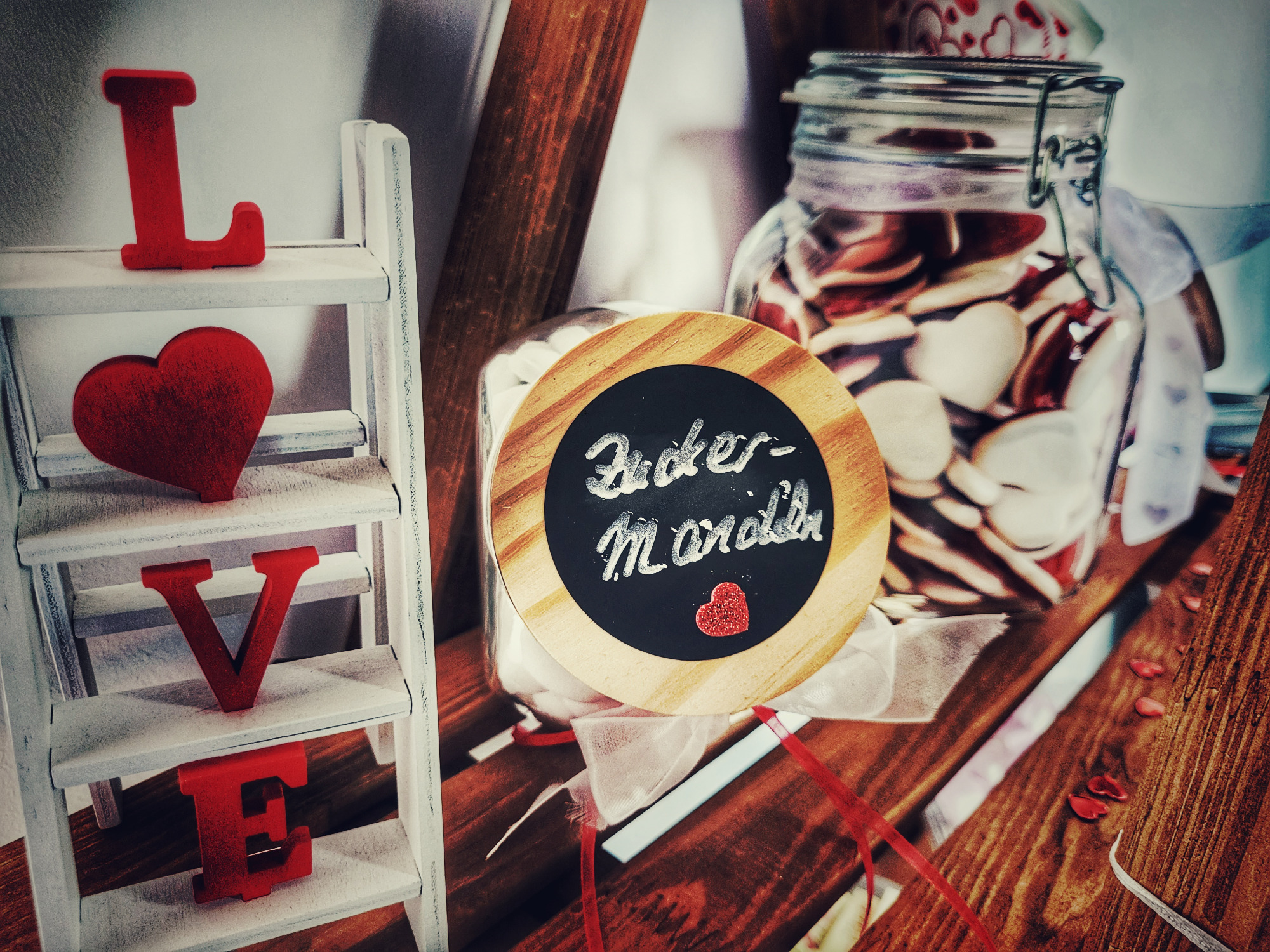 Für Freunde verschiedene Dekosachen für die große Hochzeitsfeier gemacht...