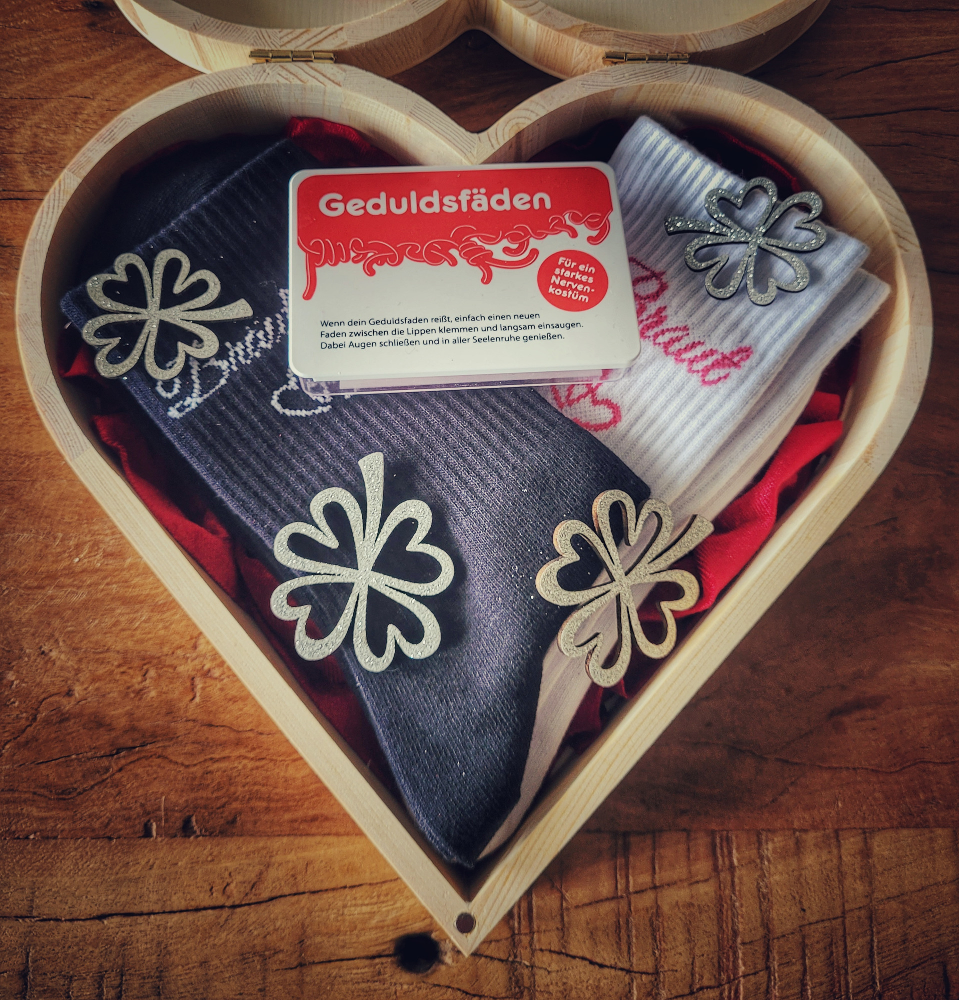 Bevor sie auch nur den Hauch einer Chance hatten kalte Füße zu bekommen, gab es das hier... Rezept für eine gute Ehe, Geduldsfäden, etwas Glück und für jeden warme Socken....
