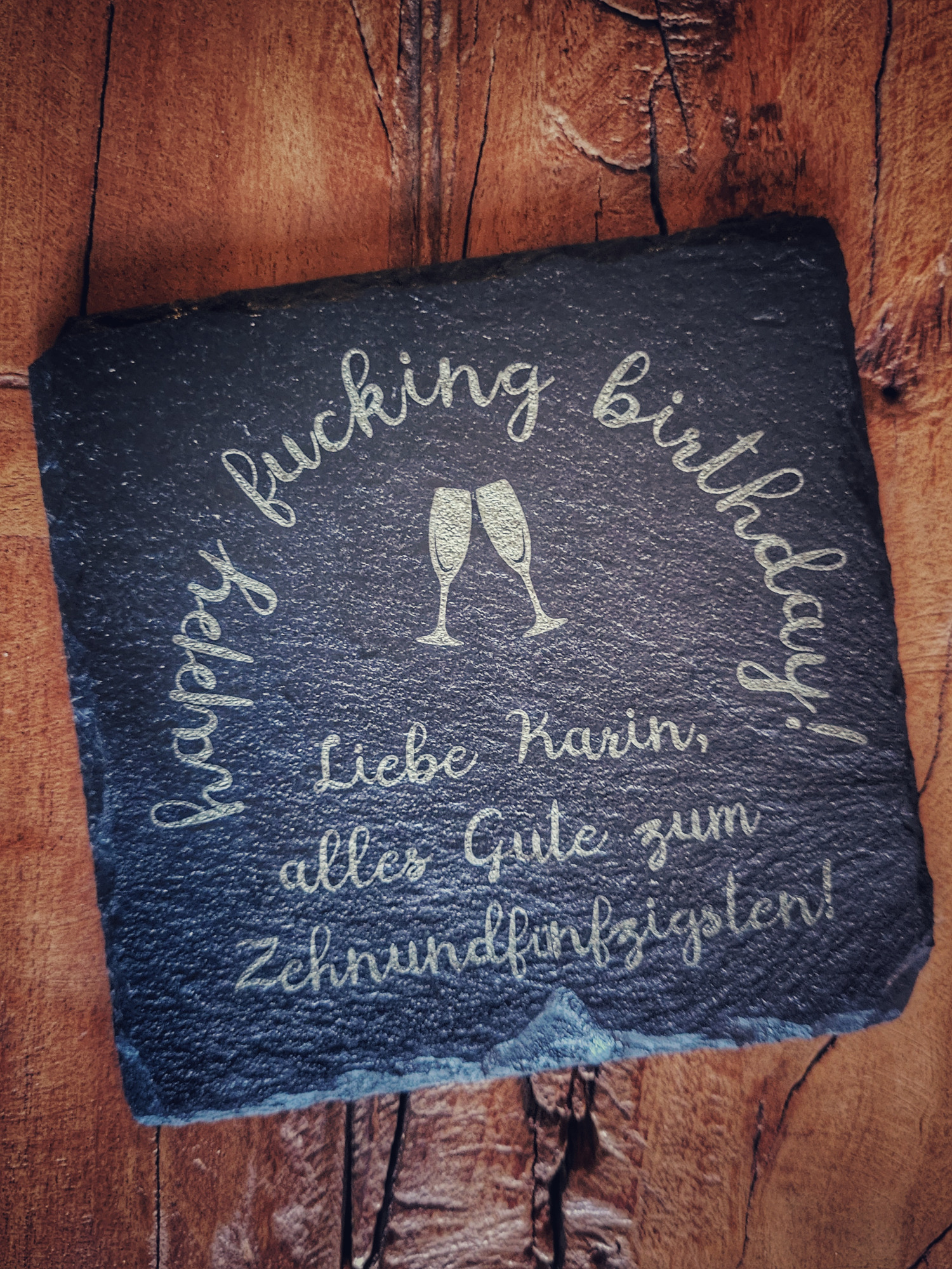 Das Holz ungefähr so alt wie die beiden zusammen, mit Ecken und Macken... aber sie passen perfekt zueinander...